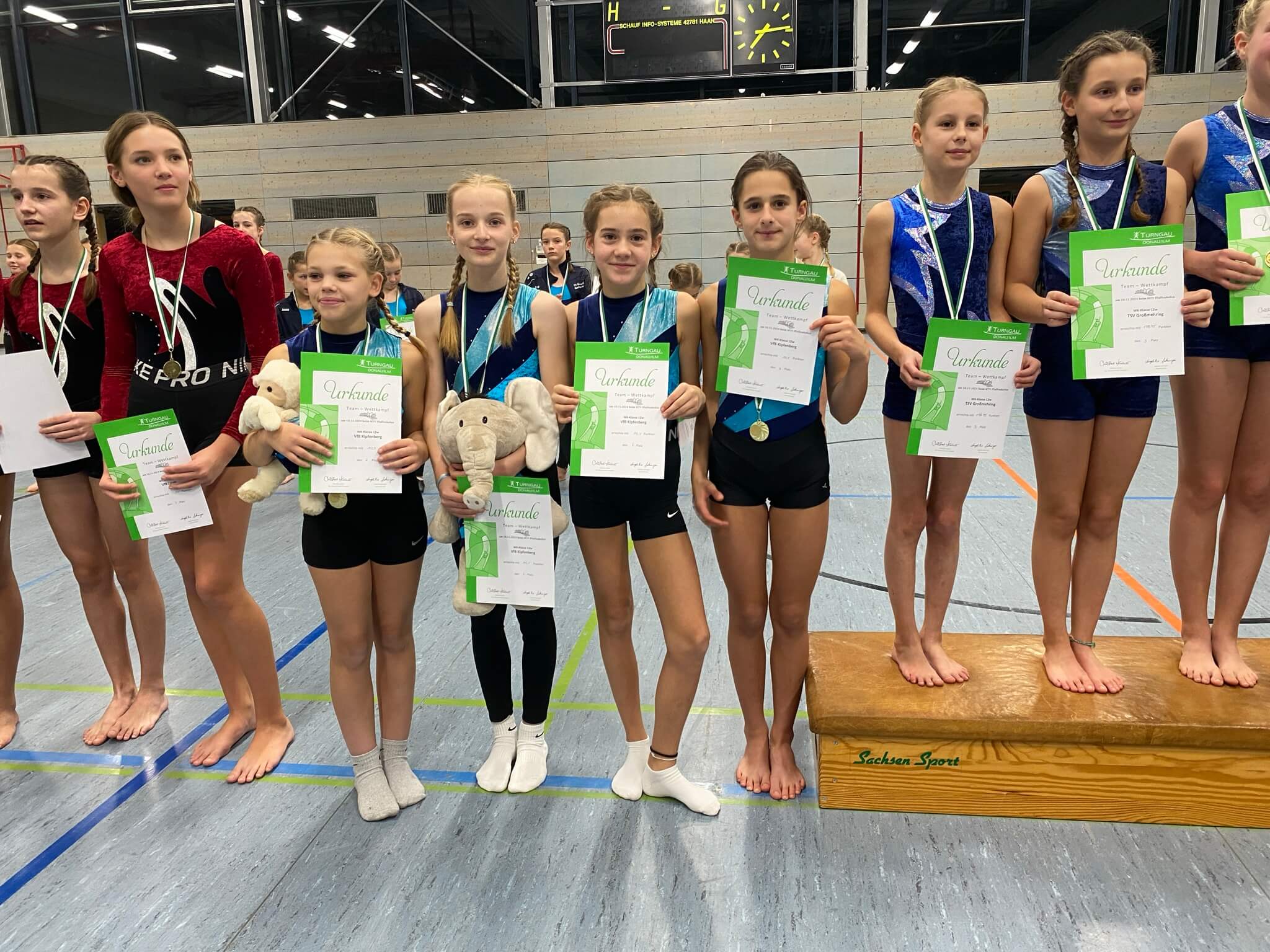 Sie zeigten an allen Geräten durchweg gute Leistungen und wurden am Ende in einem sehr starken Teilnehmerfeld für ihre Leistung mit dem 12. und 13. Platz belohnt. Trainiert werden sie von Sabine Stoß und Florian Hackner.
